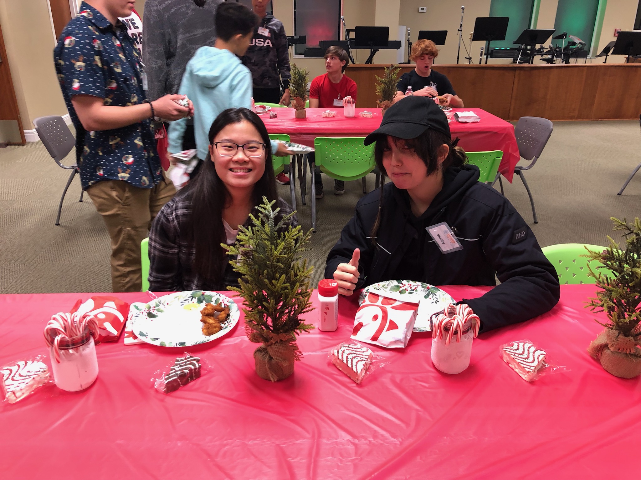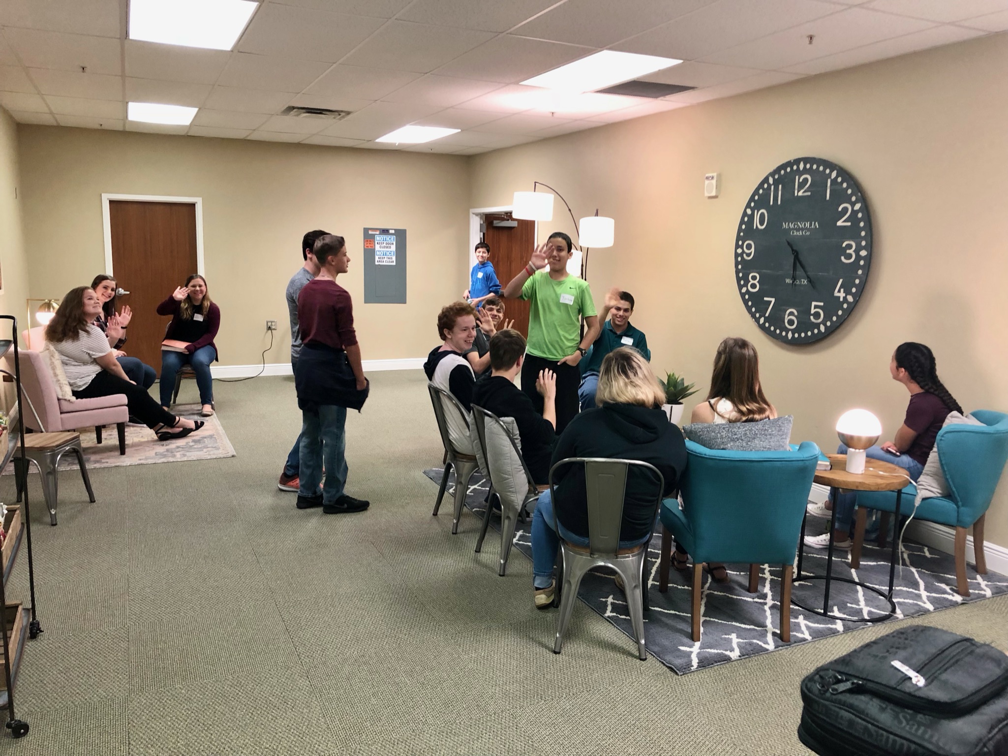 The entrance is on the northwest side of the building, through the double doors under the green awning. Youth will be greeted inside, given a name tag, and welcomed with a warm smile.